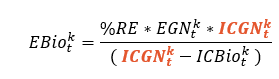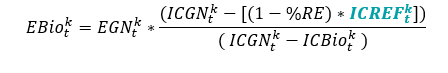 Além disso, se um agente tiver uma operação (ICGN) mais limpa que a meta do governo ([(1 – %RE) * ICREF]) – isto é, o numerador menor que zero – EBio torna-se negativo, o que pode ser interpretado pelo governo como créditos de carbono negociáveis entre projetos (ou somente como obrigação volumétrica de biometano igual a zero). Esse mecanismo adiciona eficiência alocativa ao sistema, como funciona nos principais instrumentos econômicos de política ambiental do planeta.